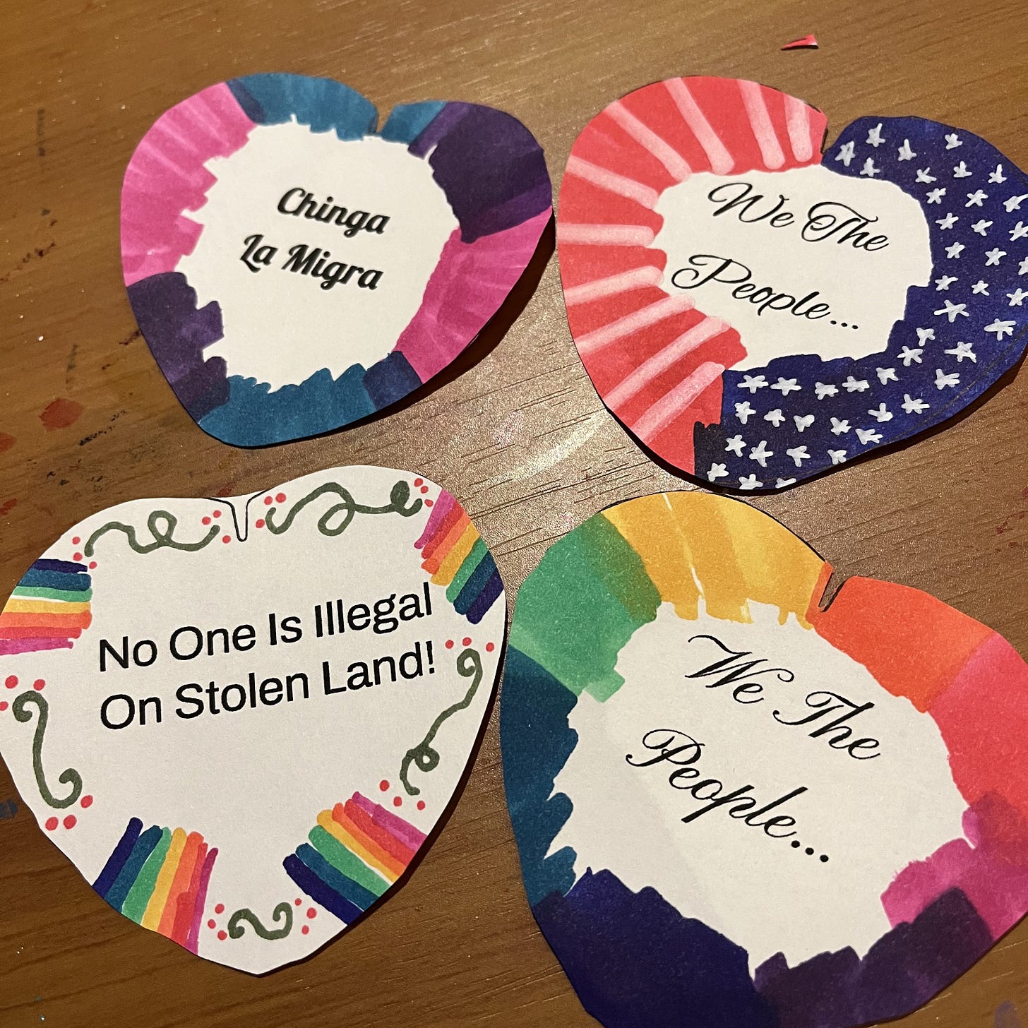 What I haven’t fully come to terms with was that creativity isn’t a luxury for me. It isn’t something I do for fun when there’s time. It’s how my body knows how to breathe through what it’s carrying. Recently I’ve needed to make protest pins, and offer them to strangers on the street. I’ve been knitting as catharsis, and to calm my nervous system down.